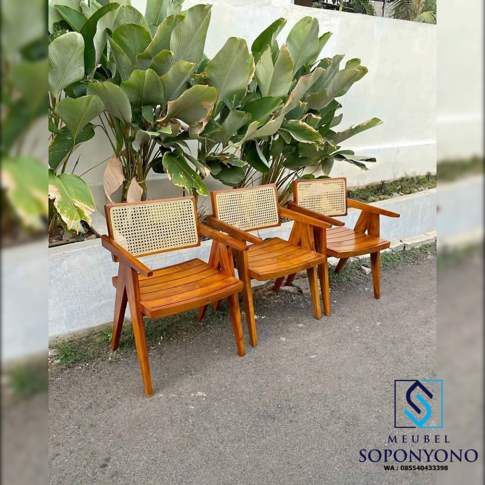 - Bahan : Kayu Jati Solid & Rotan Alami
