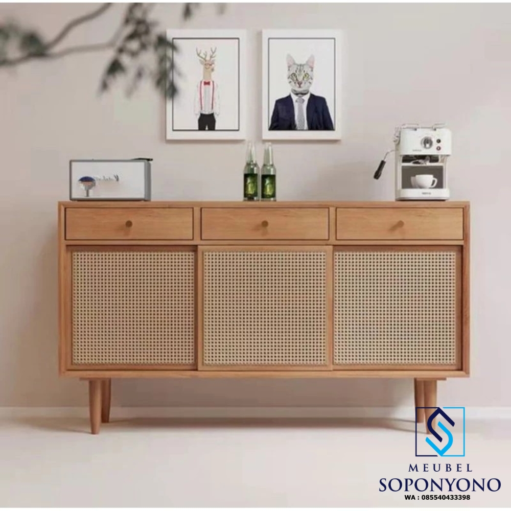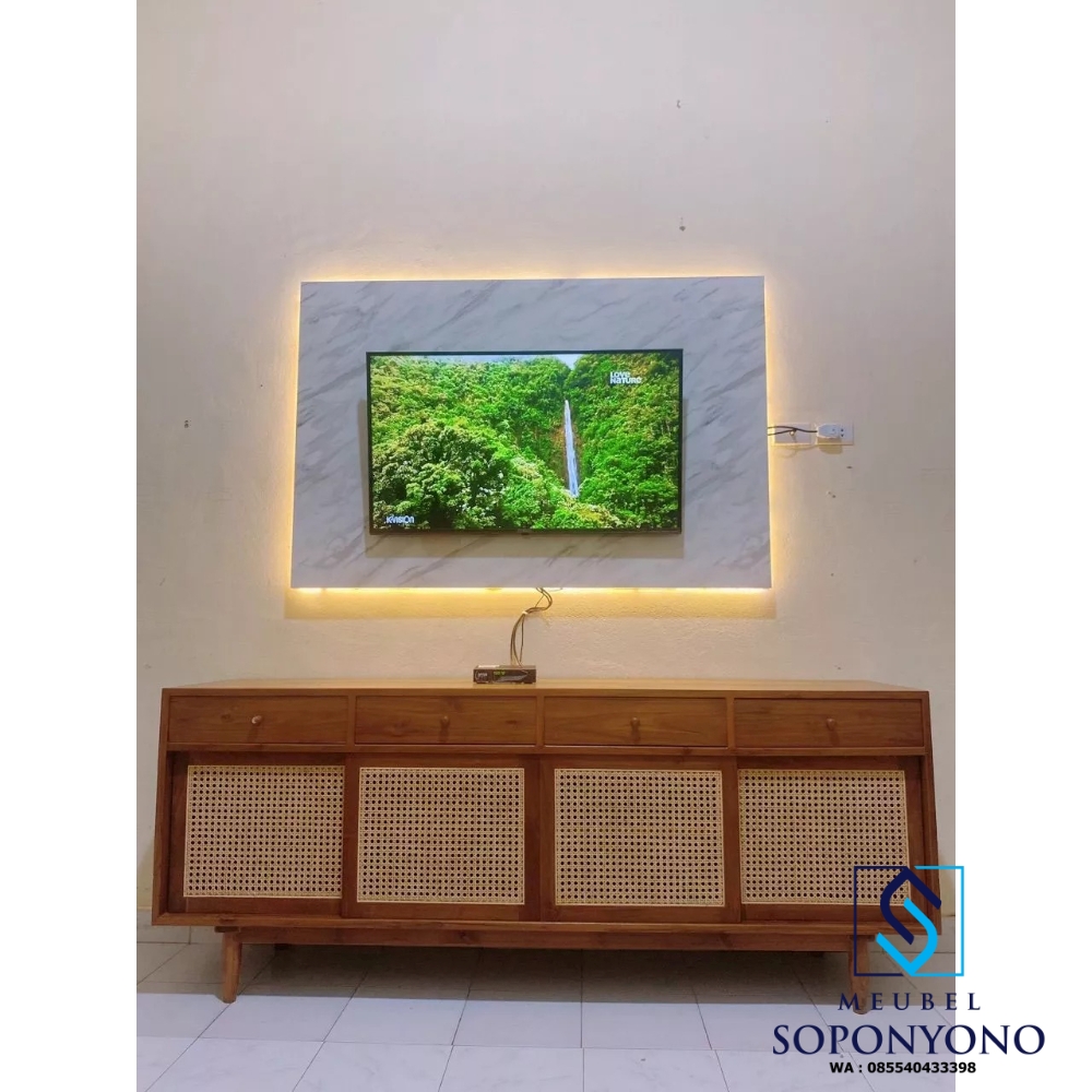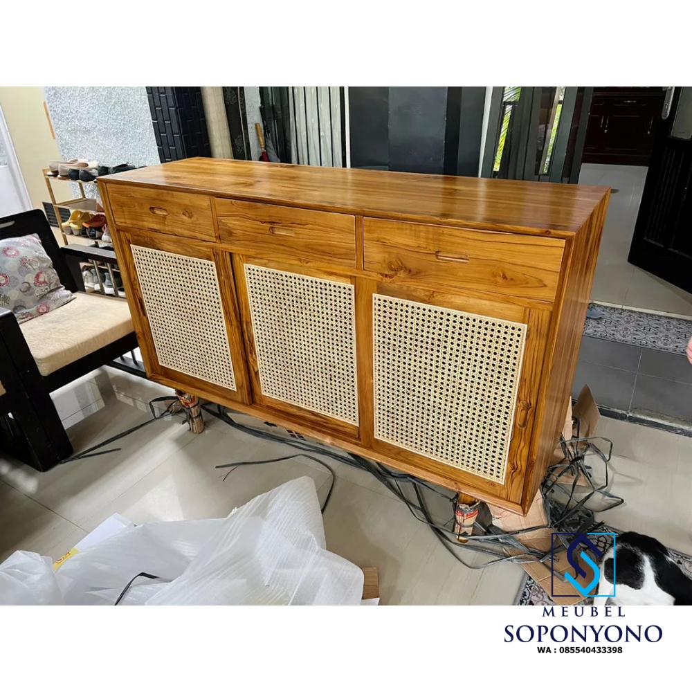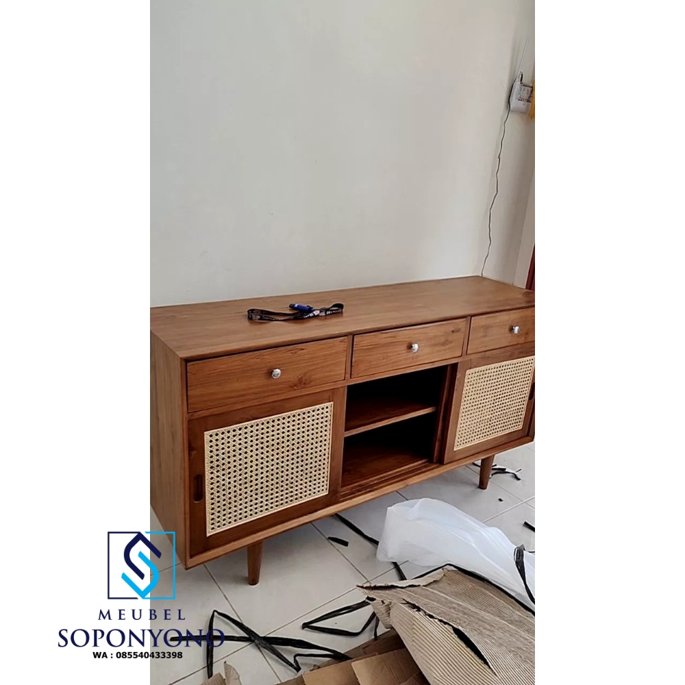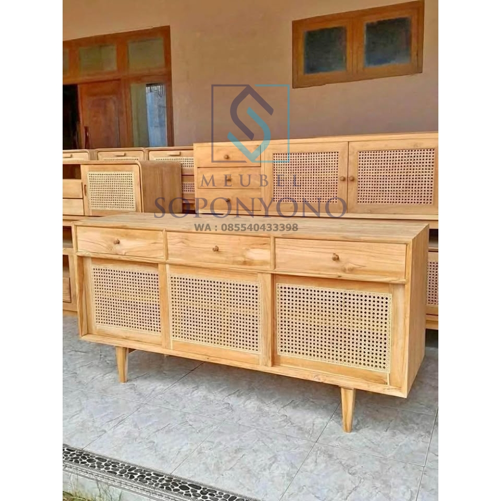 Meja Bufet TV Rotan Kayu Jati Minimalis