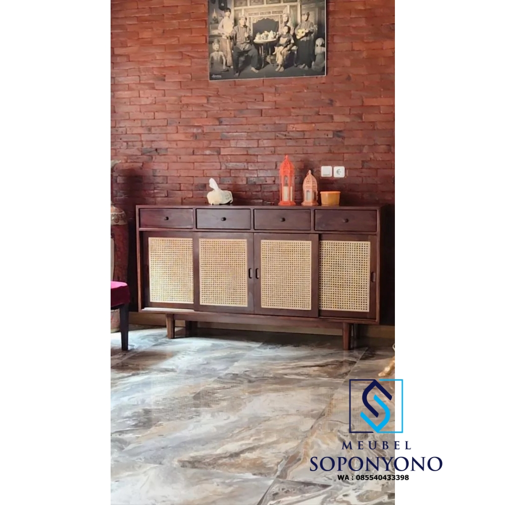 Finishing Meja Bufet TV Rotan Kayu Jati Minimalis