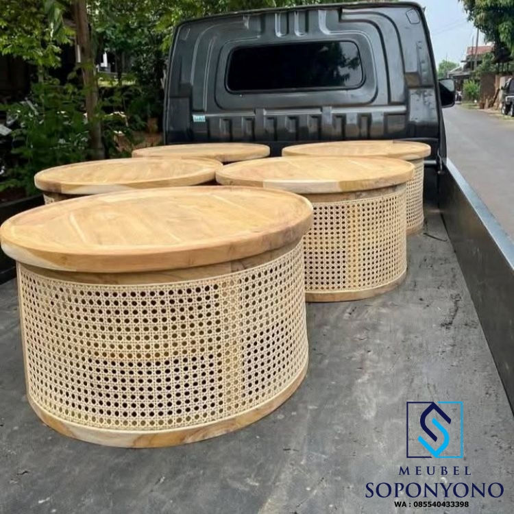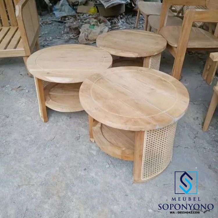 Harga Meja Tamu Bulat Minimalis Jati Kombinasi Rotan
