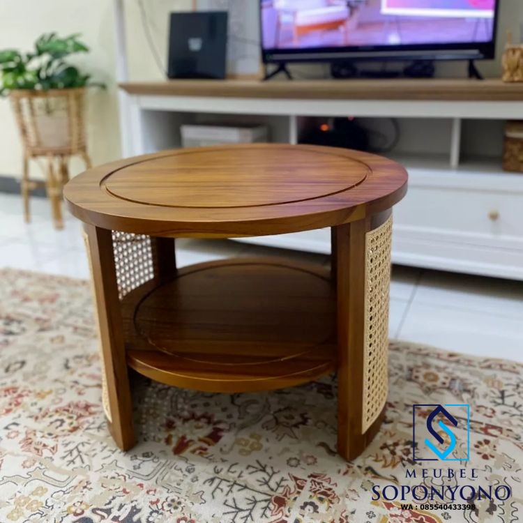 Spesifikasi Meja Tamu Bulat Minimalis Jati Kombinasi Rotan
