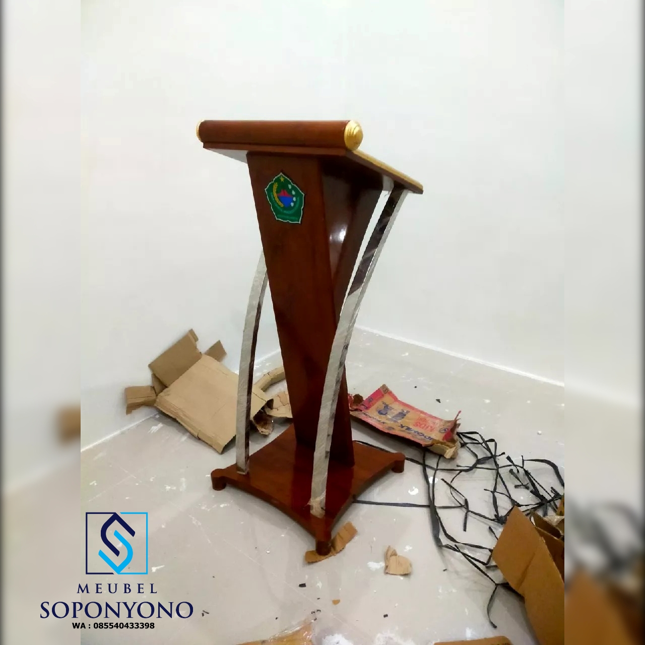 Finishing Mimbar Pidato Minimalis Model Modern Mewah Jati